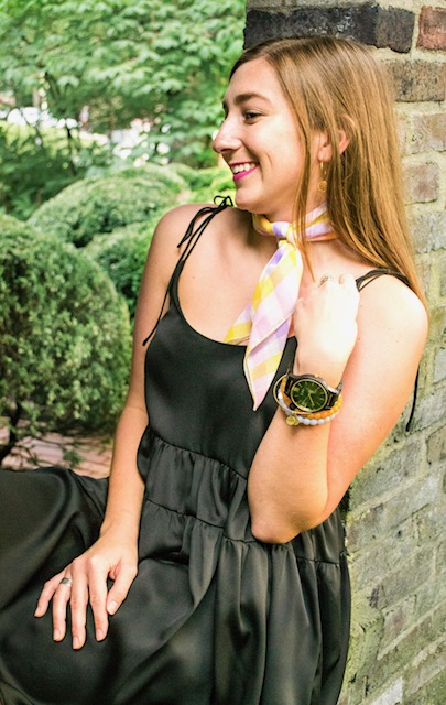 2.Neck scarves: a perfectly feminine way to add a statement. Now if you are anything like me, you don’t wear a lot of necklaces. I am definitely more of a statement earring and arm candy kind of girl. However, I have recently been obsessed with adding colorful neck scarves, or ascots, to any outfit. You can easily pair them with tshirts, dresses, tanks, you name it and I’m not going to lie, they make feel like a French girl. They not only add a pop of color, but they can also add texture. This is a trend I have been living for and they are surprisingly easy to find. In this outfit the bright colors in this gingham neck scarf provide an excellent way to add color.